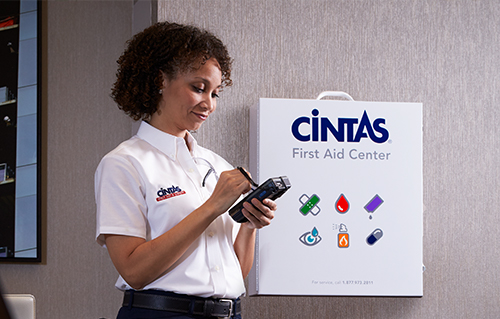 Incidents happen during the workday — a cut finger, a minor burn, a headache, a cold. Cintas offers first aid cabinets and kits to help respond to a workplace injury or illness.