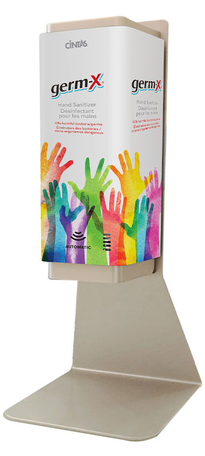 Provide the first line of defense against germs in the workplace by adding the automated commercial hand sanitizer dispenser and stand to your Cintas program today. Help reduce the spread of germs and promote a healthy environment through better hand hygiene.